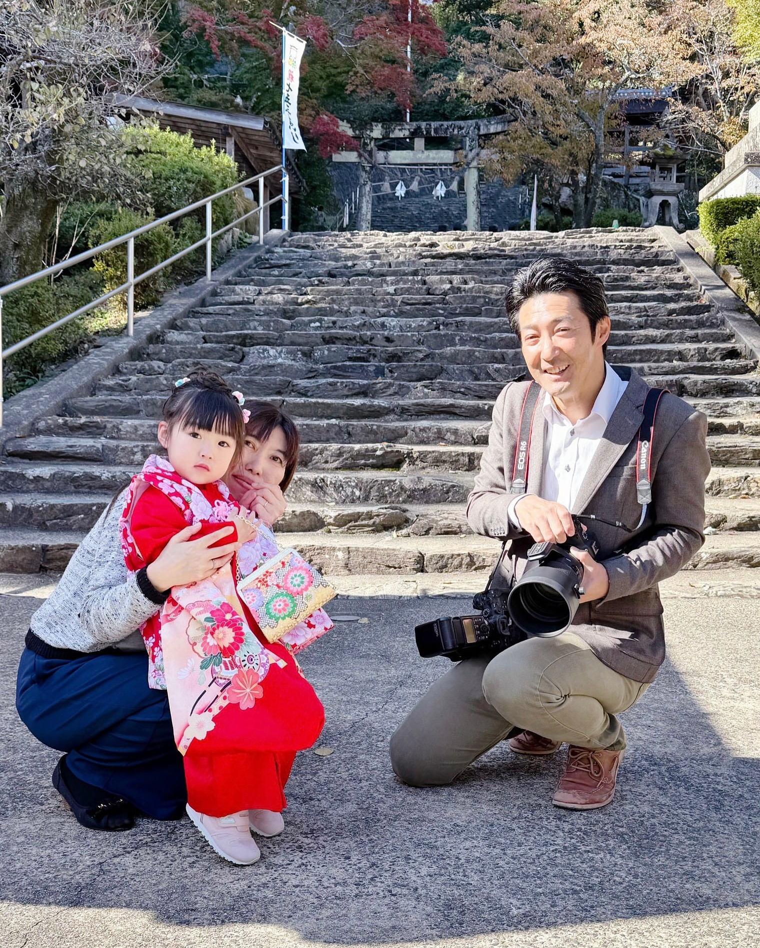 石段を一生懸命歩いてお参りする様子 千歳飴、傘やまりを持ったりと いろんなポーズ頑張ってくれました👏💕 お子さんの可愛い姿に、未・・・
