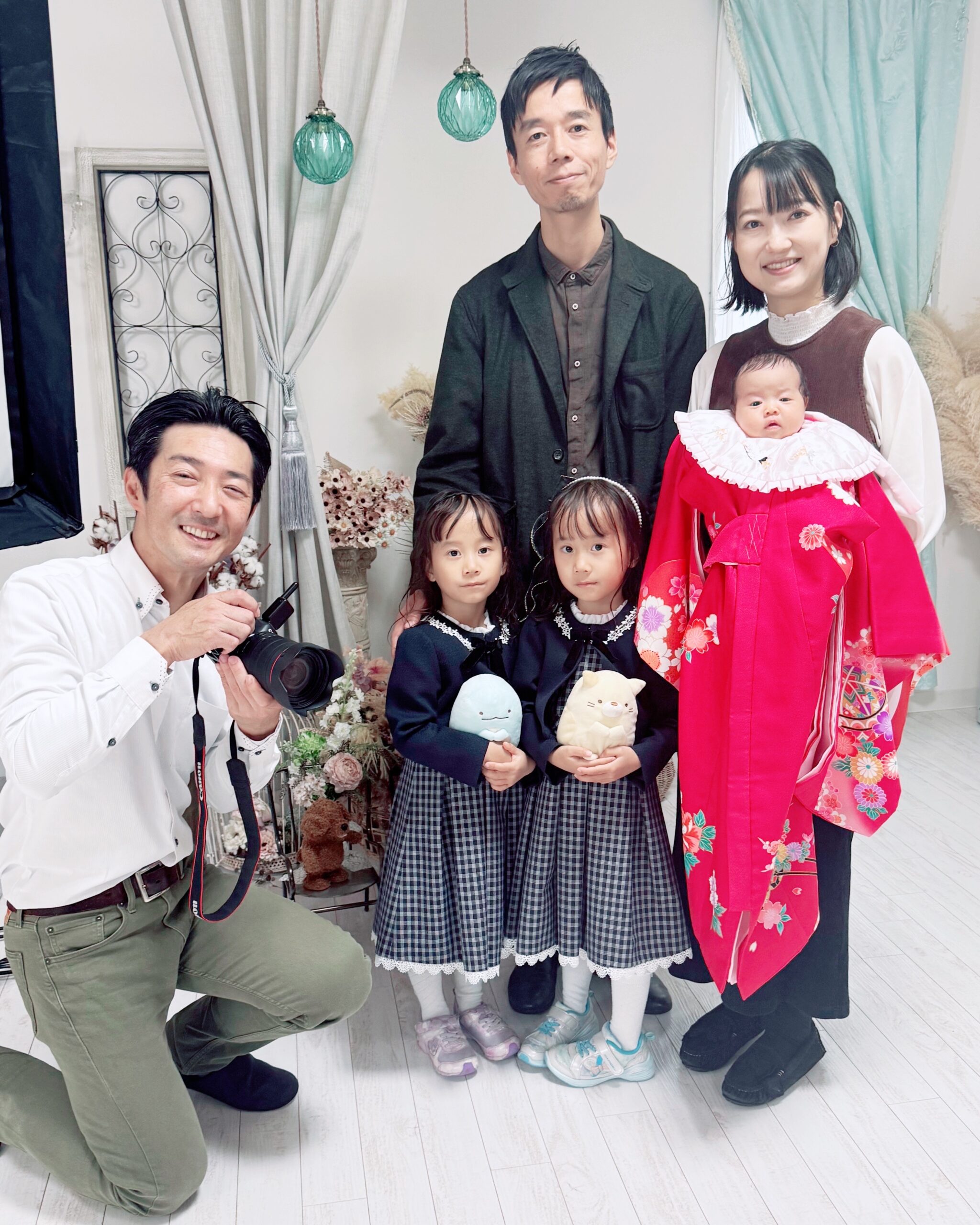 お宮参りの記念撮影にご来店いただきました✨ ご家族写真はもちろん、赤ちゃんお一人のカットや2人のお姉ちゃんとのカットなどなど。たくさん撮影させてい・・・